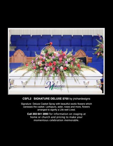 Signature Deluxe Casket Spray with beautiful exotic flowers caressing the casket. Larkspurs, aster, roses and more, flowers arranged to signify a Life Well LiveD
