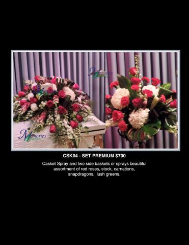 Beautiful assortment of red roses, stock, carnations, snapdragons, lush greens.