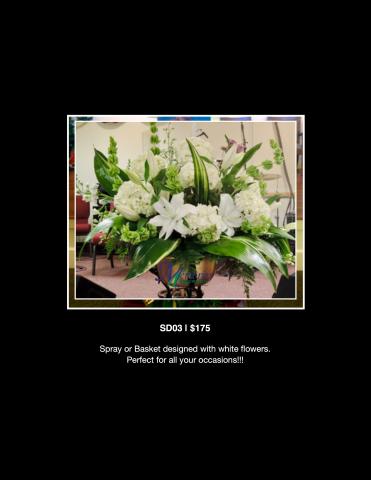 Spray or Basket designed with white flowers. Perfect for all your occasions!!!